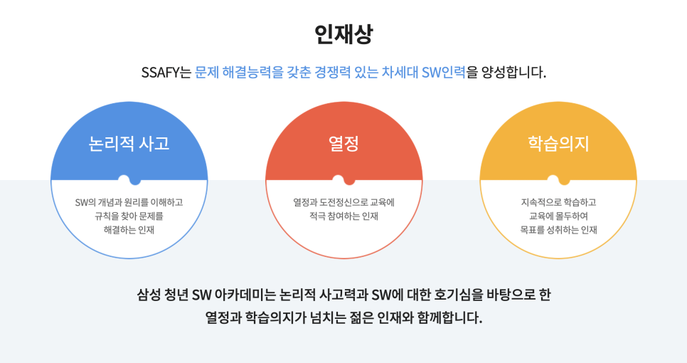 SSAFY가 원하는 인재상은 논리적 사고, 열정, 학습 의지임을 분명히 인지하고 이를 반영하여 작성하는게 중요해보인다.